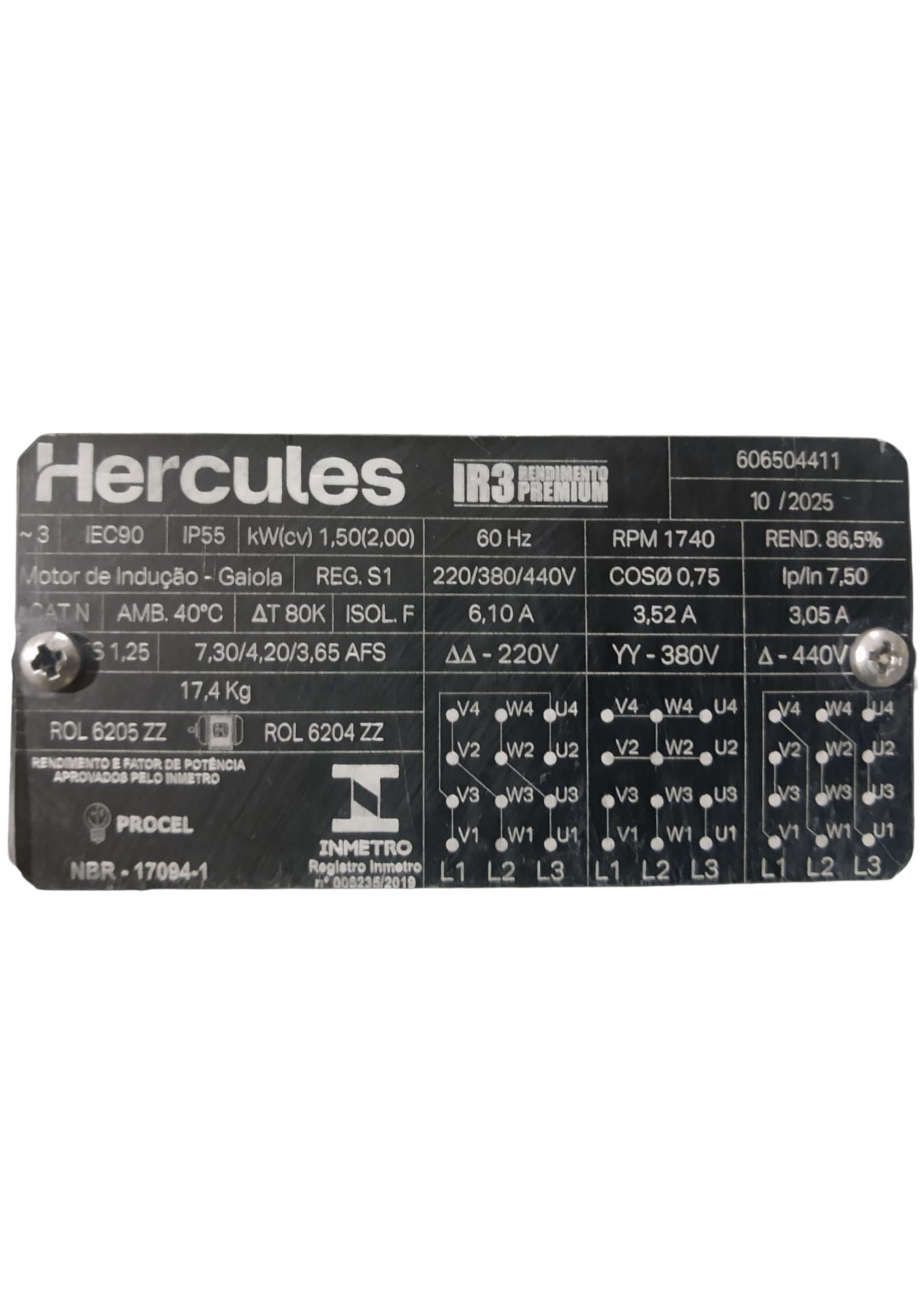 Tensão: 220/380/440 V trifásico