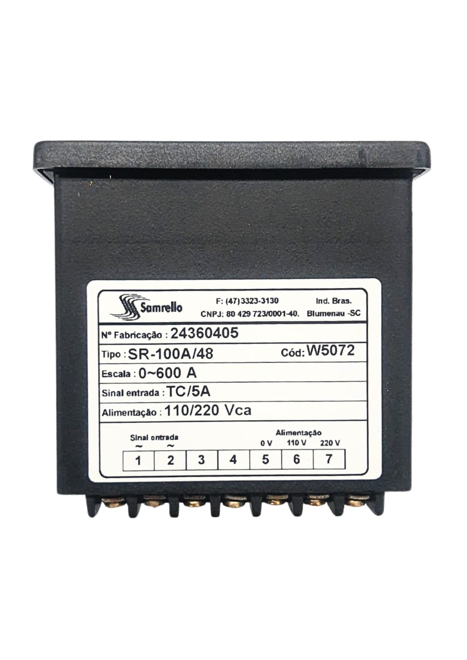 O amperímetro digital SR-100A/48 (código 5072) é um instrumento utilizado para medição de corrente elétrica em sistemas industriais. Alimentado em 110/220 VCA, realiza a leitura da corrente através de transformador de corrente (TC) com secundário de 5A, exibindo o valor em display digital. É indicado para monitoramento de cargas elétricas em painéis e quadros de distribuição.