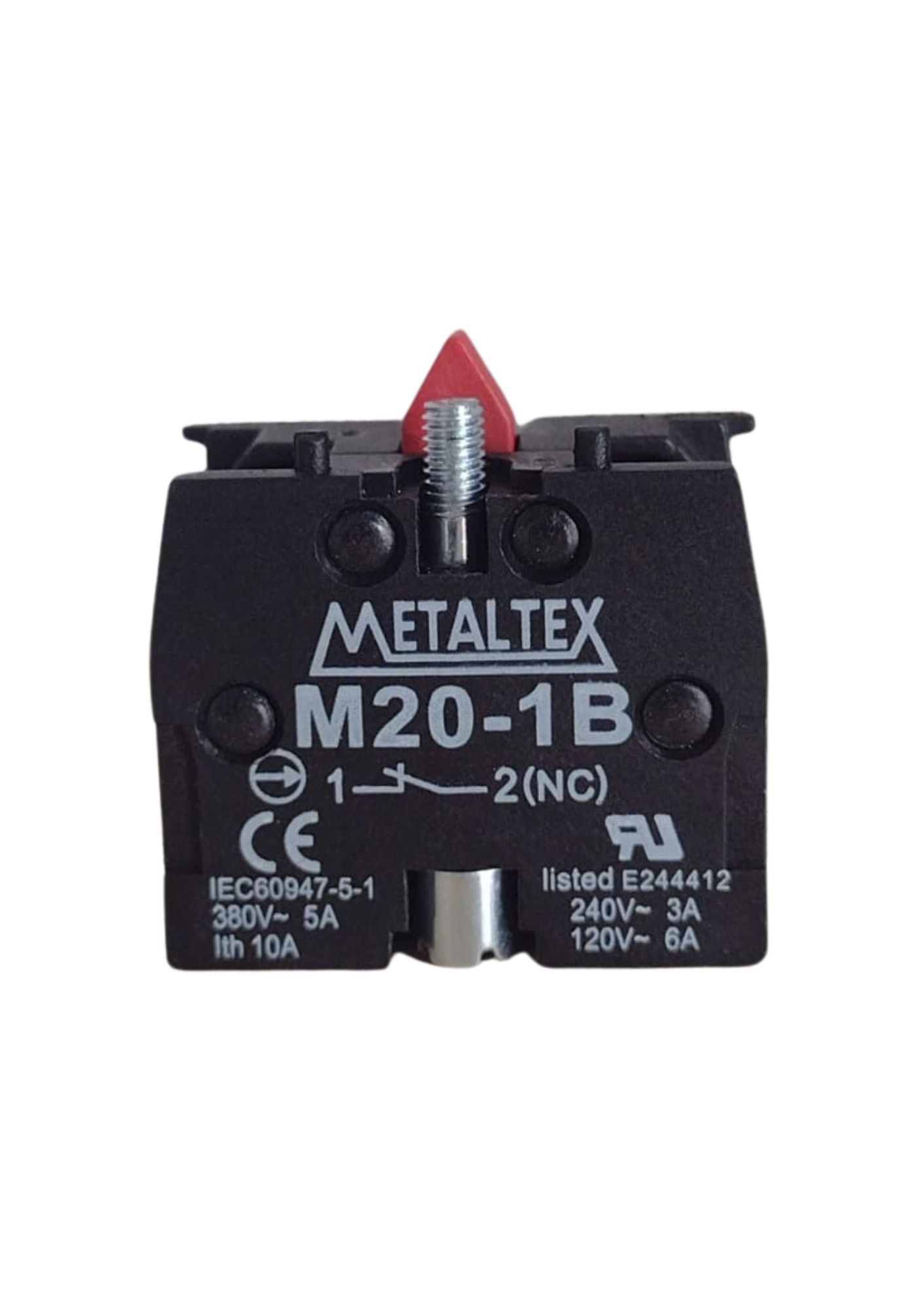 O Bloco de Contato Auxiliar M20-1B é um módulo de contato 1NF (Normalmente Fechado), utilizado em conjunto com botoeiras e seletores das linhas M20 e P20 Metaltex.