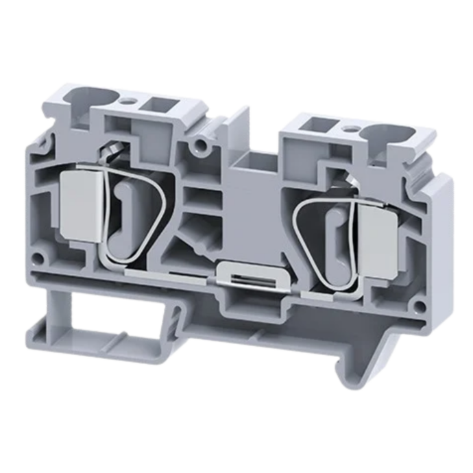 O Borne de Mola 16 mm² CSC16T da Connectwell é um terminal de passagem projetado para facilitar a conexão de condutores de até 16 mm² em sistemas elétricos industriais. Este modelo utiliza um mecanismo de fixação por mola, operado por chave de fenda, garantindo uma instalação rápida e segura.