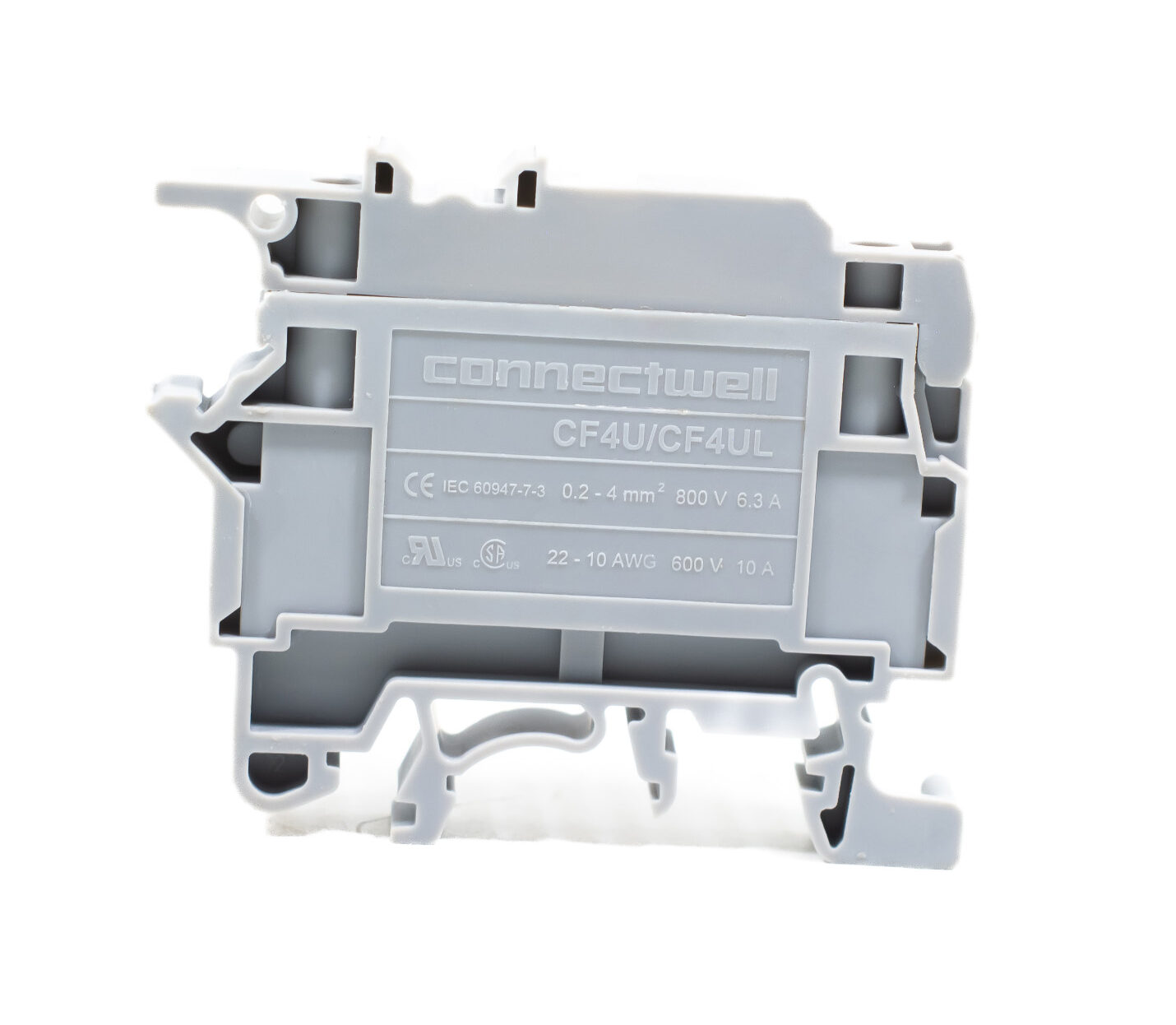 Borne porta-fusível modelo CF4U, compatível com fusíveis nos tamanhos 5x20 mm e 5x25 mm. Utilizado para proteção de circuitos elétricos, garantindo segurança contra sobrecargas e curtos-circuitos.