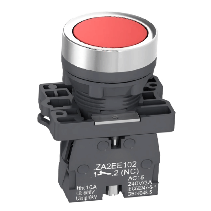 O Botão Vermelho XA2EA42 XA2 é um dispositivo de comando de 22 mm, utilizado em painéis elétricos e sistemas de automação. Possui retorno por mola (momentâneo) e 1 contato normalmente fechado (1NF), sendo ideal para funções de parada ou desligamento de máquinas e equipamentos, garantindo confiabilidade e fácil operação.