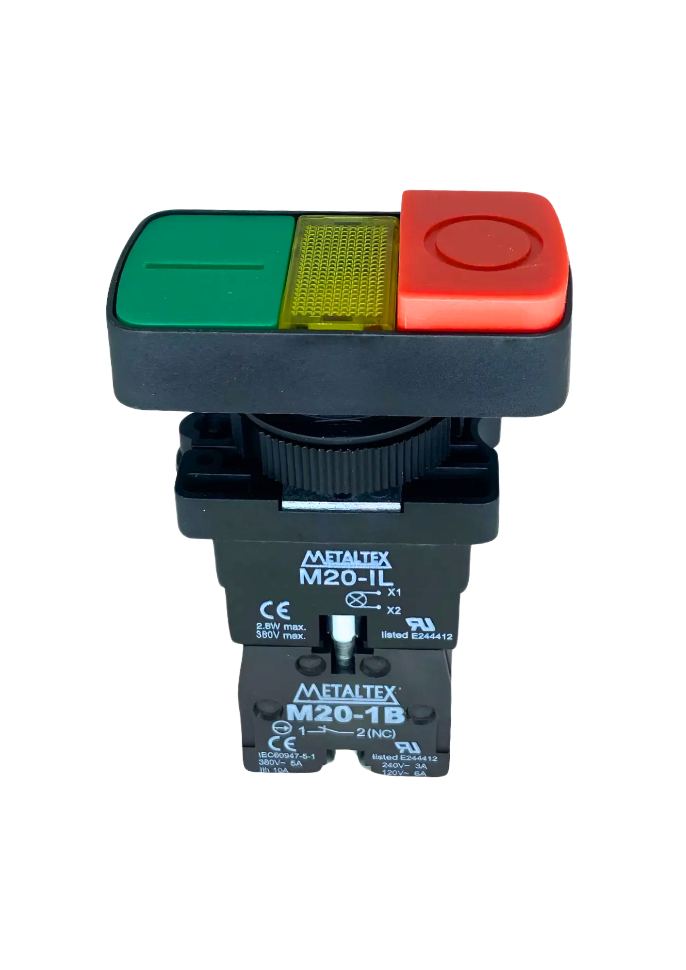 BOTÃO DP ILUM 22MM PLST VD/VM 24V 1NA+1NF P20IDL-Y7-1C 009.053