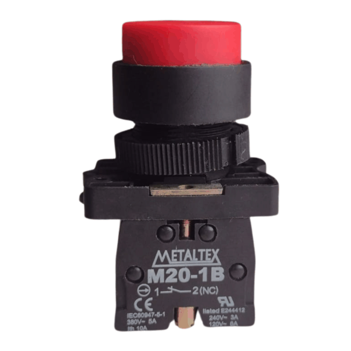 O P20ARR-R-1B é um botão pulsador não faceado de 22 mm, fabricado em plástico e projetado para aplicações industriais que requerem alta durabilidade e confiabilidade.