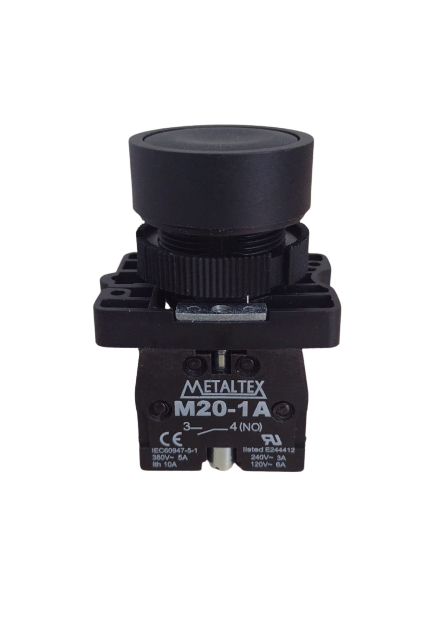 O Botão de Pulso 22mm Metaltex P20AFR-B-1A é um comando simples, de cor preta, utilizado em painéis elétricos e sistemas de automação industrial.