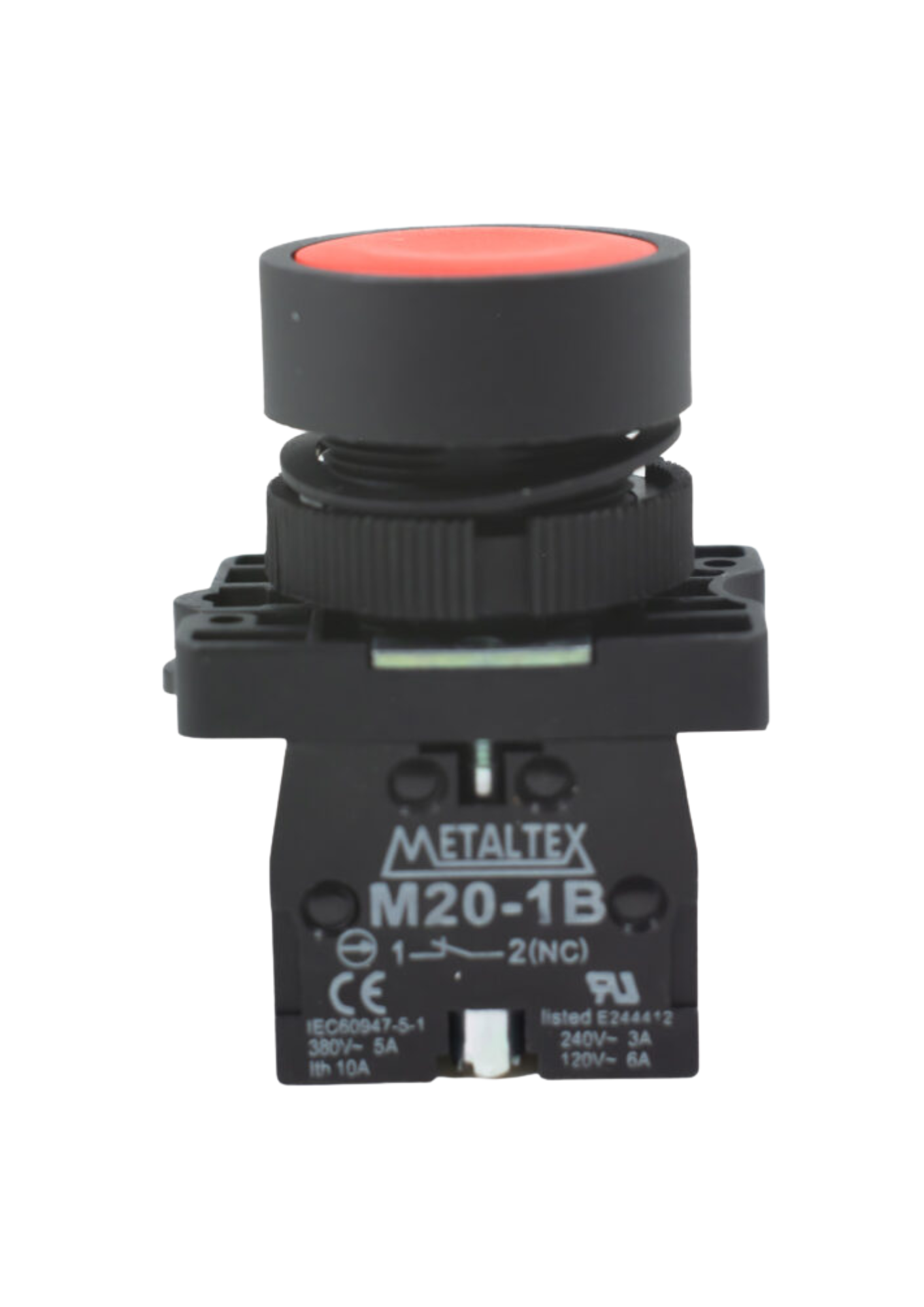 O botão pulsador faceado P20AFR-R-1B é um dispositivo de comando com diâmetro de 22 mm, fabricado em plástico na cor vermelha. Projetado para instalação em painéis de controle, é utilizado para acionamentos momentâneos, retornando à posição original após o uso. Este modelo específico possui um contato normalmente fechado (1NF), o que significa que o circuito permanece fechado até que o botão seja pressionado, interrompendo o fluxo de corrente.
