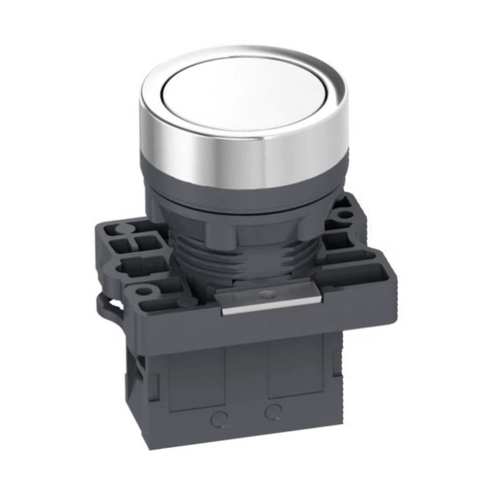 O Botão de Retorno por Mola Branco 22mm é um dispositivo de comando utilizado em painéis elétricos e sistemas de automação.