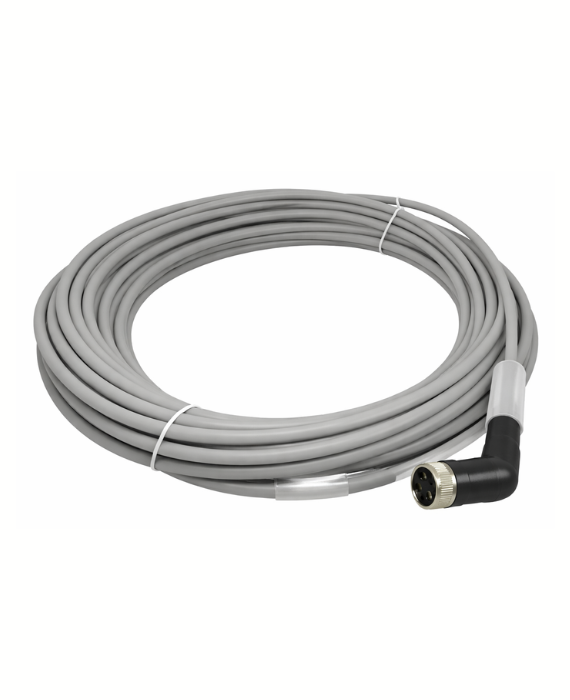 Cabo conector angular M12 4 polos modelo CON A-M12-4P-5M-PVC (código 164260), indicado para conexão de sensores e atuadores em sistemas de automação industrial. Possui conector fêmea angular com cabo de 5 metros, garantindo praticidade na instalação e alta confiabilidade na transmissão de sinais.