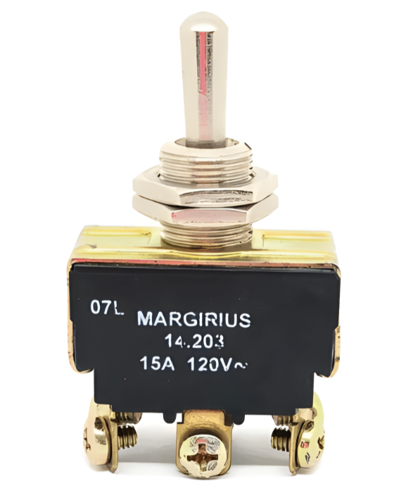A chave 14203 Margirius A1B1P1Q Bipolar 15A PA000951 é um interruptor de alavanca metálica projetado para aplicações que requerem controle manual de circuitos elétricos bipolares, permitindo alternar entre diferentes estados de operação.