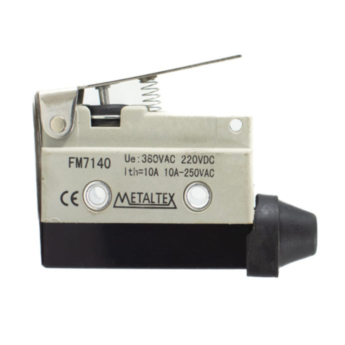 Chave de fim de curso modelo FM7140, equipada com atuador tipo alavanca curta com rolete, projetada para detectar movimentos por contato lateral ou deslizante. O rolete reduz o atrito durante o acionamento, garantindo resposta suave, rápida e precisa, mesmo em mecanismos com pequenas variações de alinhamento.