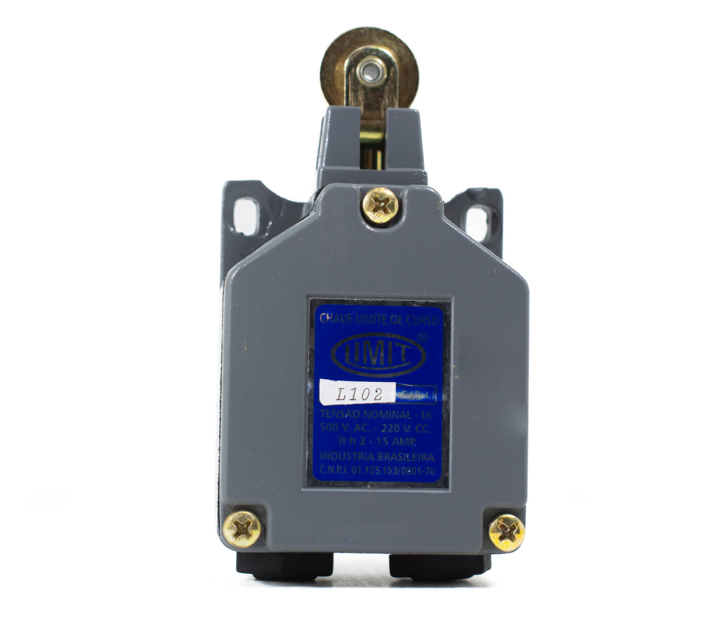 Descrição Chave Fim de Curso L-102 Limit Câmara Fria 220v Aplicado: Câmara Fria Especificações Técnicas -Robusto -Acionamento rápido -15A Ligação Para Conduíte de 3/8 Contatos 1 NA / 1 NF - atuação rápida Tensão Nominal: UI -500V AC - 220V CC Intensidade Permanente 1 th2 - 15a Curso Útil: 7mm / Total: 11mm