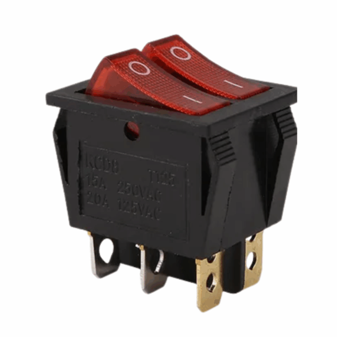 A Chave Liga/Desliga Dupla Vermelha Iluminada 20A 6 Pinos 220V é um dispositivo de controle robusto, projetado para aplicações industriais e comerciais que bloqueiam alta capacidade de corrente e sinalização visual clara.