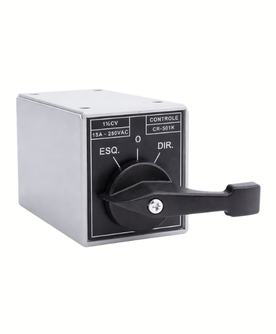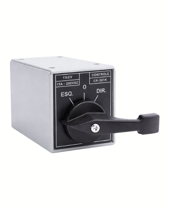 Chave alavanca reversora 15A modelo CR-501K PA000221, indicada para controle manual de reversão de circuitos elétricos, permitindo alternância entre dois sentidos de operação.
