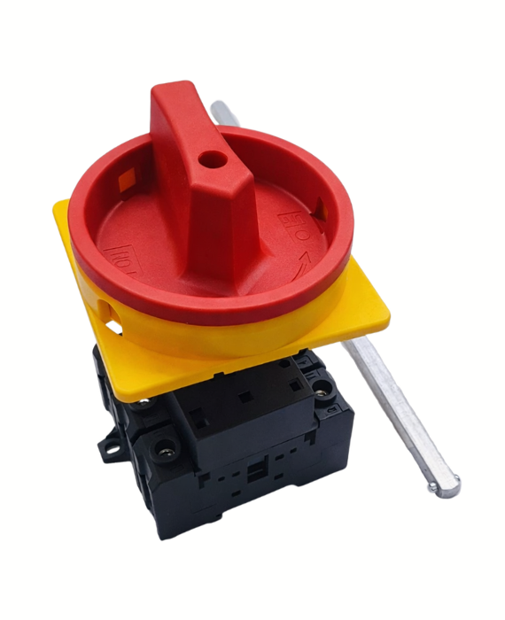 Chave seccionadora tripolar 150A modelo KD5-150-3P (I27857), indicada para seccionamento e comando liga/desliga de circuitos elétricos em aplicações industriais. Projetada para montagem no fundo do painel com acionamento externo por haste, garantindo segurança, isolamento e facilidade de operação.