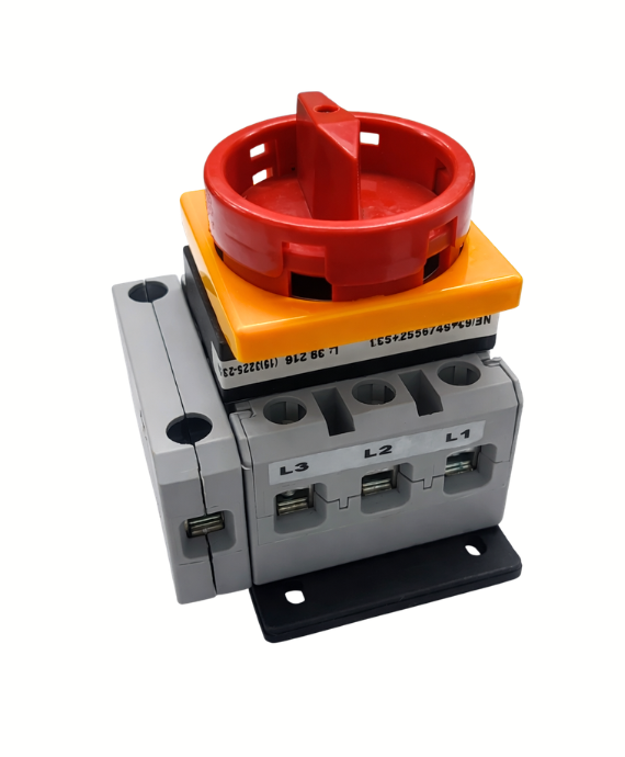 - Acionamento: manopla frontal com eixo prolongado (porta de painel)