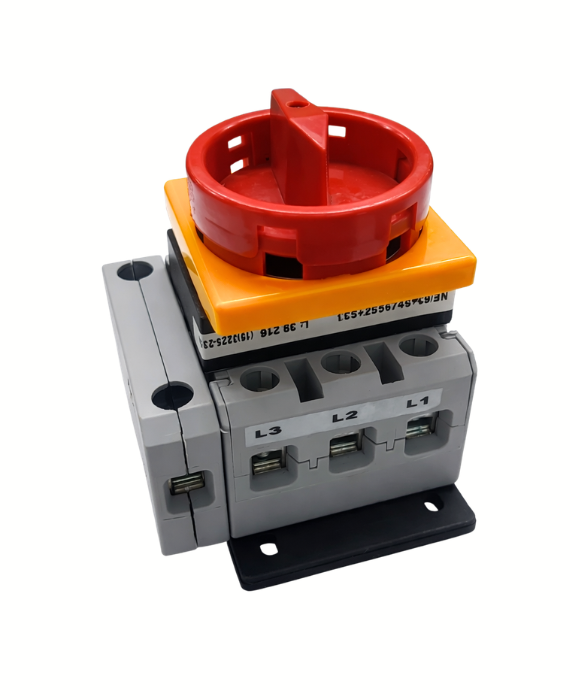 Chave seccionadora rotativa tetrapolar (4 polos) modelo NE/63-4 + S7 + S47 + S33 THS, indicada para seccionamento e isolamento de circuitos trifásicos com neutro até 63A.