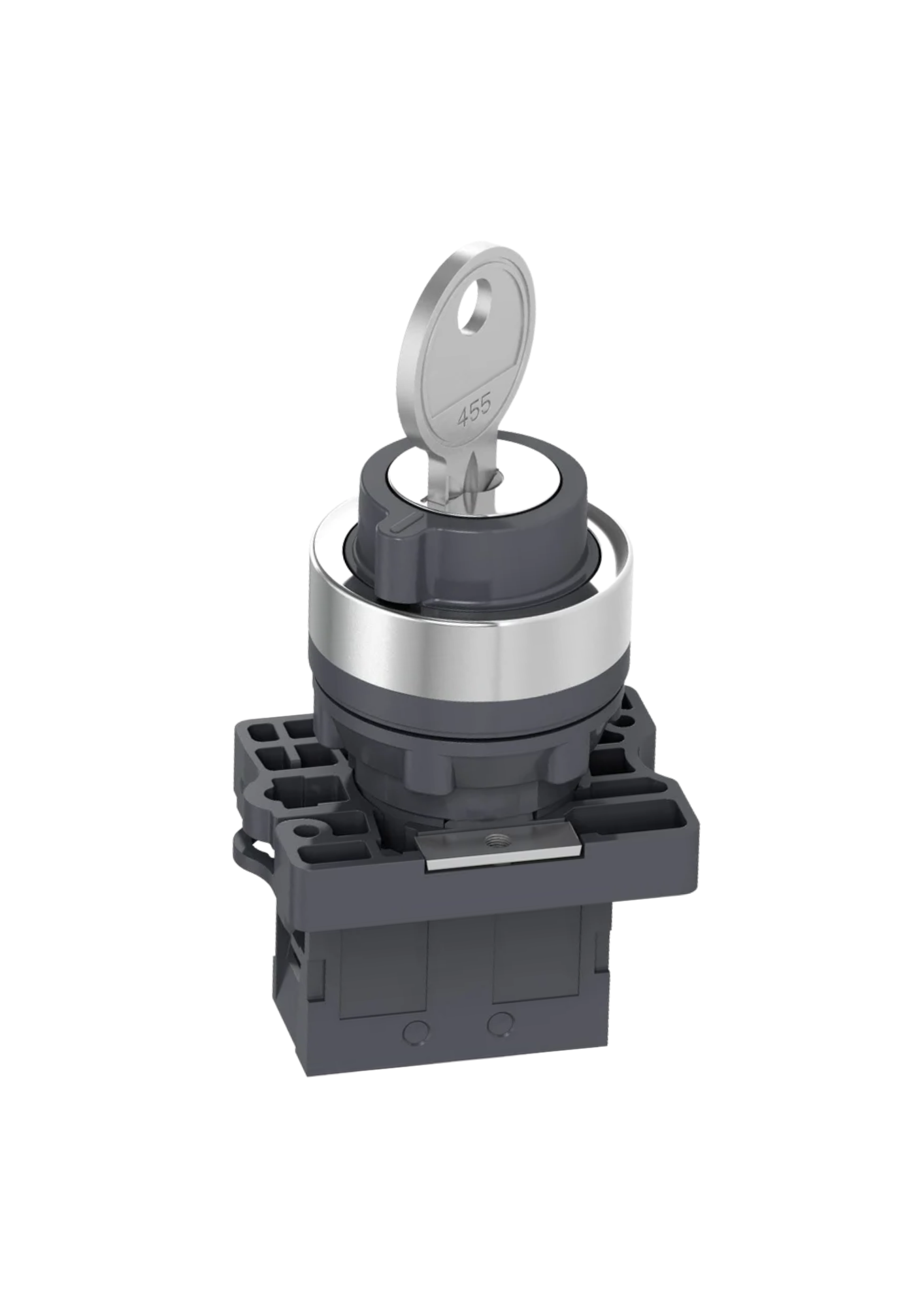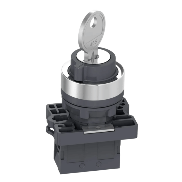 A Chave Seletora XA2EG21 da linha Harmony XA2 (Schneider Electric) é um dispositivo de comando de 22 mm com acionamento por chave, utilizado para aumentar a segurança em painéis elétricos e sistemas de automação. Possui 2 posições fixas e 1 contato normalmente aberto (1NA), ideal para funções de seleção de modos de operação, bloqueio de comandos não autorizados ou controle de máquinas e equipamentos.