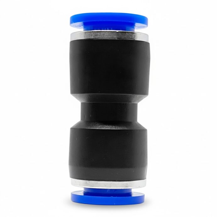 Conexão de emenda redutora para tubos pneumáticos, permitindo a transição de 8 mm para 4 mm de forma rápida e segura. Oferece vedação eficiente e instalação prática por encaixe, ideal para ajustes de diâmetro em linhas de ar comprimido.Produto