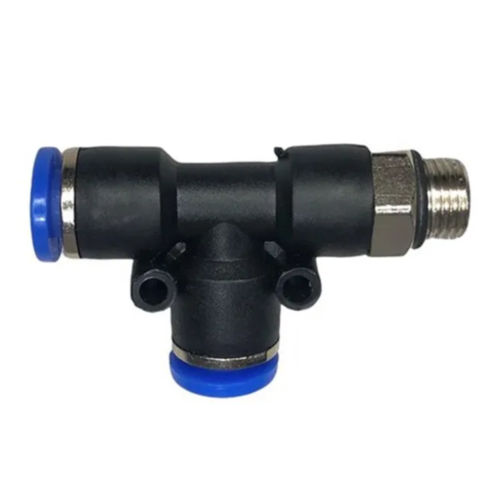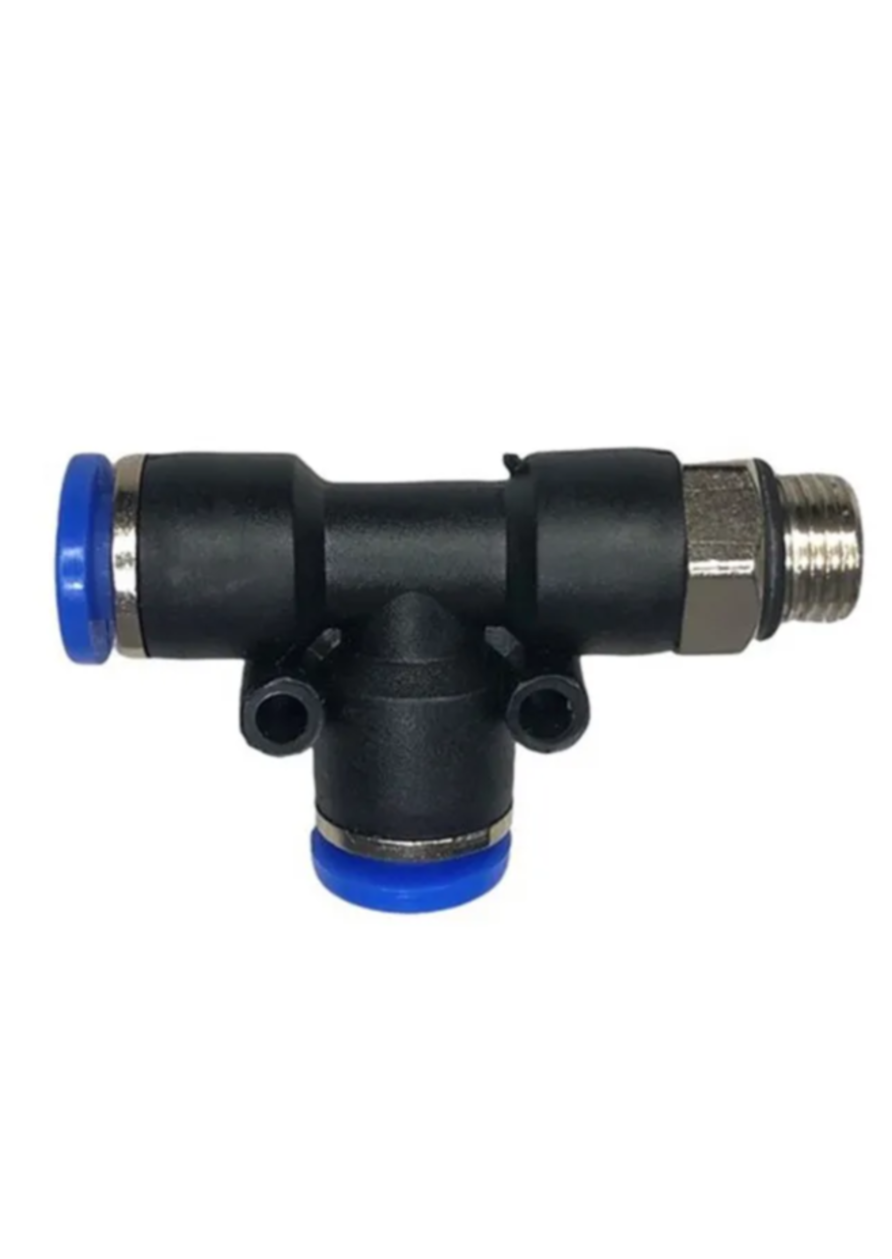 Conexão em T lateral com rosca BSPP, indicada para sistemas pneumáticos industriais que precisam de derivação de linha com confiabilidade e montagem ágil. Permite dividir o fluxo de ar comprimido mantendo o circuito limpo, organizado e bem vedado. É o tipo de peça que você instala e esquece — porque funciona.
