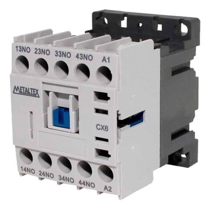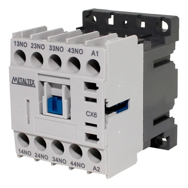 O contator auxiliar CX6-B5-22 da Metaltex é um dispositivo compacto e eficiente, projetado para ampliar as funções de controle em circuitos elétricos. Com uma configuração de 2 contatos normalmente abertos (NA) e 2 contatos normalmente fechados (NF), é ideal para aplicações que requerem múltiplos pontos de comutação.