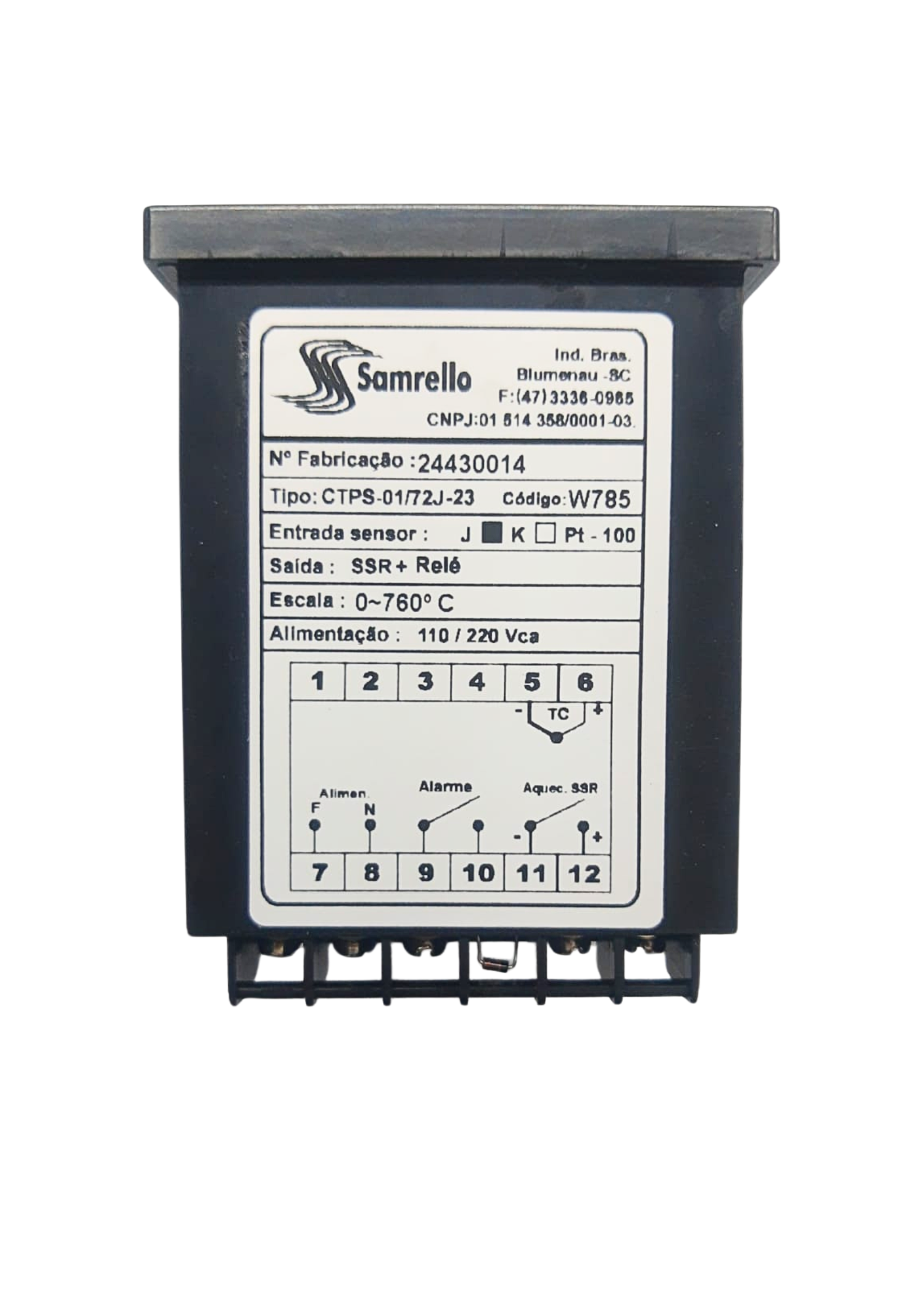 O Controlador Digital de Temperatura CTPS-01/72J-23 é um equipamento industrial desenvolvido para controle térmico utilizando sensor termopar tipo J. Possui alimentação bivolt 110/220V AC, permitindo maior flexibilidade de aplicação em diferentes instalações.