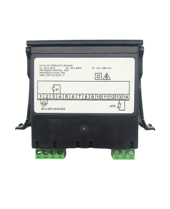 - Entrada: sensor de temperatura (termopar ou PT100, conforme modelo)