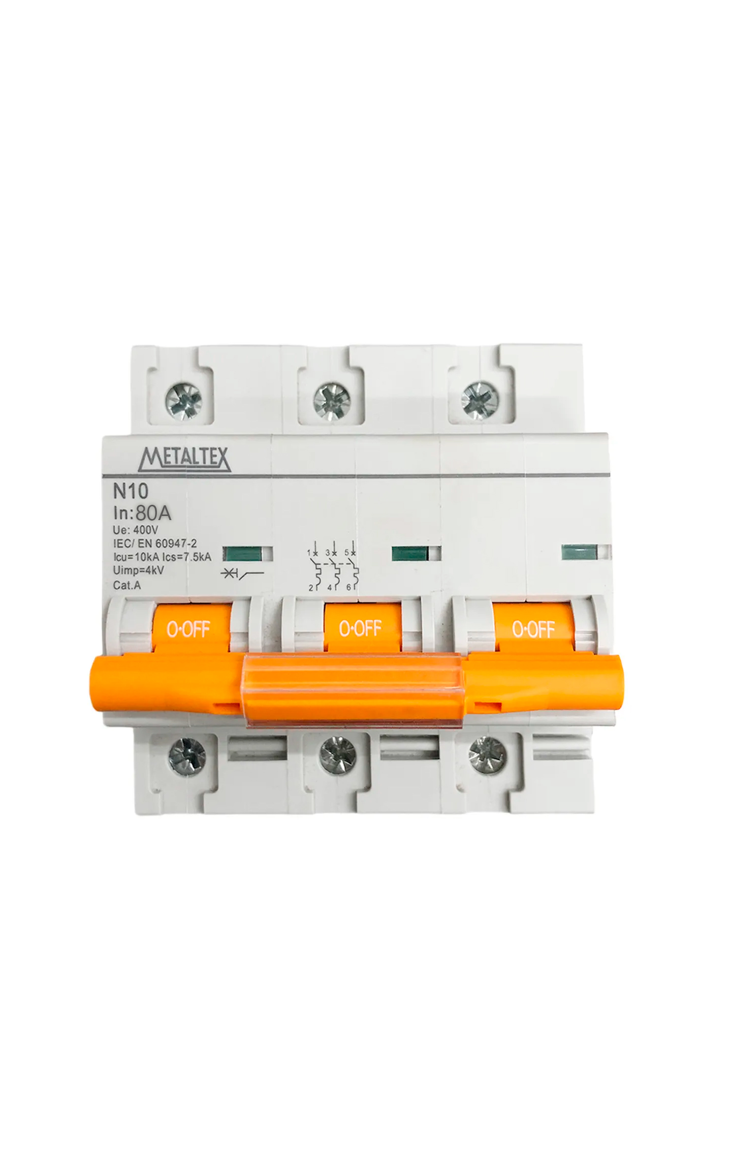 O N10-3P80 é um disjuntor miniatura tripolar de 80A, curva C, fabricado pela Metaltex. Este dispositivo é projetado para proteger circuitos elétricos contra sobrecargas e curtos-circuitos, garantindo segurança em instalações residenciais, comerciais e industriais.Produto