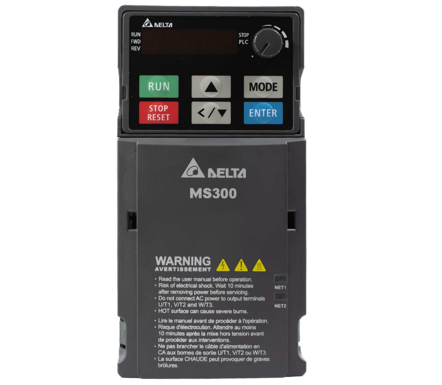 O inversor de frequência Delta VFD4A2MS43ANSAA pertence à série MS300 e é projetado para controlar motores trifásicos de até 2 HP (1,5 kW) com alimentação trifásica de 460 V AC. Este modelo é ideal para aplicações que requerem controle preciso de velocidade e torque em motores de indução (IM) e motores de ímã permanente (PM).