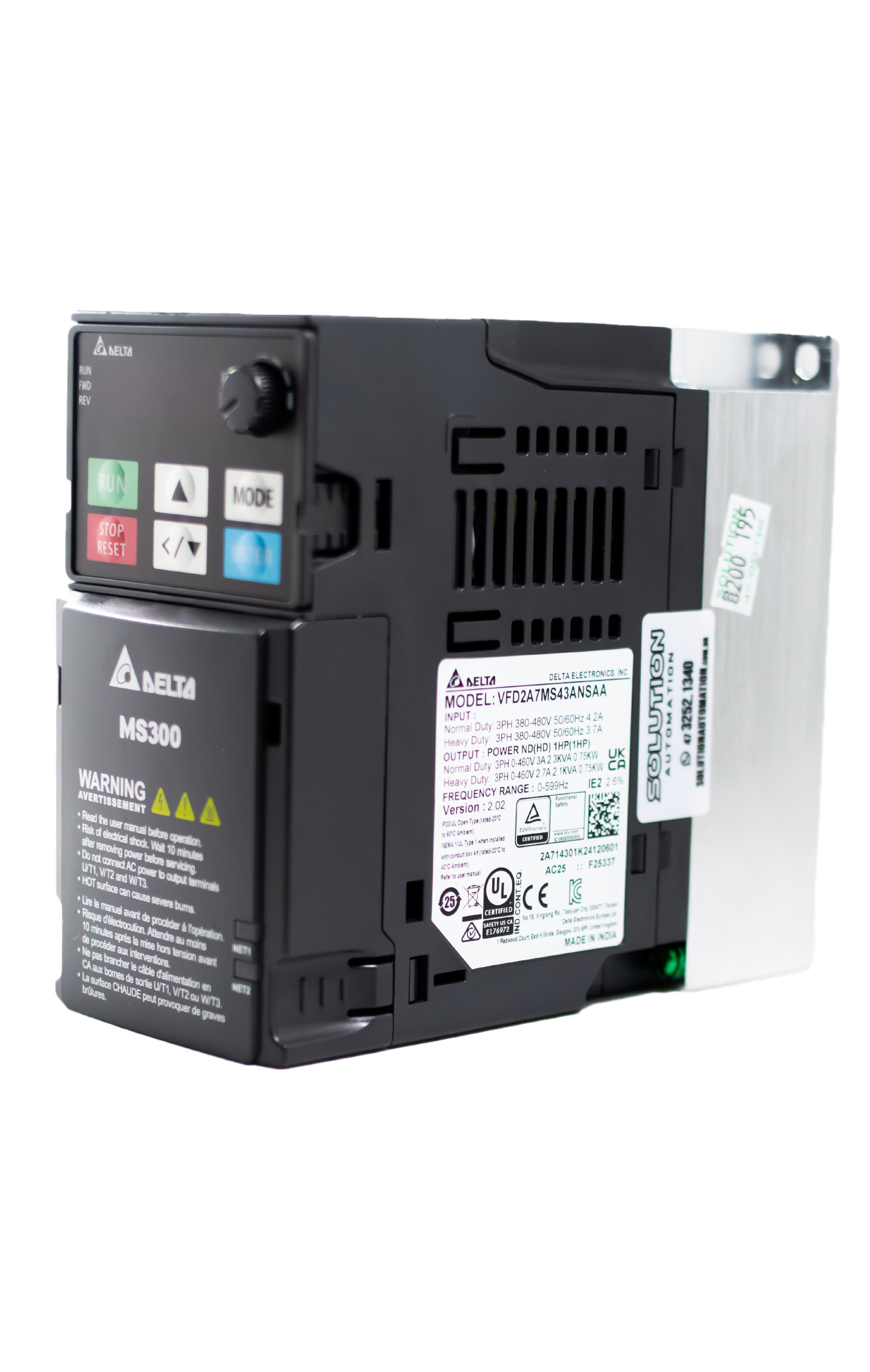 O MS300 1.0HP 460V 3F-C/STO (VFD2A7MS43ANSAA) é um inversor de frequência compacto e eficiente, desenvolvido para aplicações que exigem controle de velocidade e torque em motores elétricos de 1.0 HP em sistemas trifásicos de 460 VCA. Ele é ideal para uso em máquinas industriais, sistemas de ventilação, bombas, transportadores e outras aplicações que necessitam de ajuste de velocidade e economia de energia.