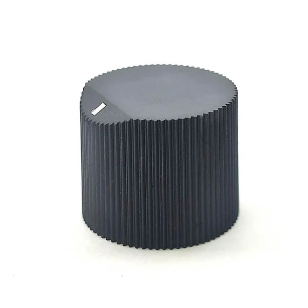 Knob preto modelo KP-03 com parafuso de fixação lateral, ideal para ajuste manual em potenciômetros com eixo de 6 mm. Fornece ótima ergonomia e firmeza na regulagem.
