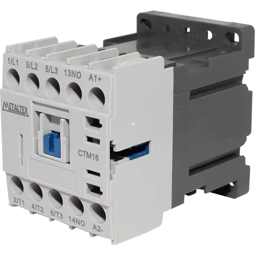 O Mini Contator Tripolar CTM16-B0-310 da Metaltex é um dispositivo compacto projetado para aplicações em sistemas de automação industrial e controle de motores. Com uma bobina de 24VCC e capacidade de corrente de 15A em categoria AC-3, este contator é adequado para operações frequentes de acionamento e desligamento de cargas elétricas.