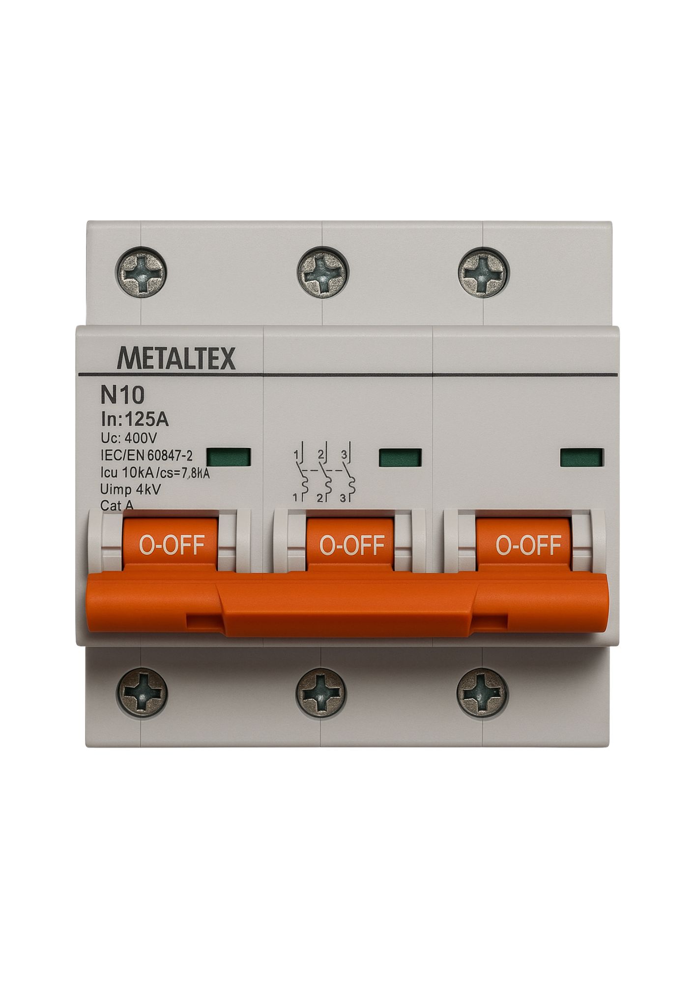 O N10-3P125 é um disjuntor miniatura tripolar de 125A, curva C, com capacidade de interrupção de 10kA, fabricado pela Metaltex. Este dispositivo é projetado para proteger circuitos elétricos contra sobrecargas e curtos-circuitos, garantindo segurança em instalações residenciais, comerciais e industriais.
