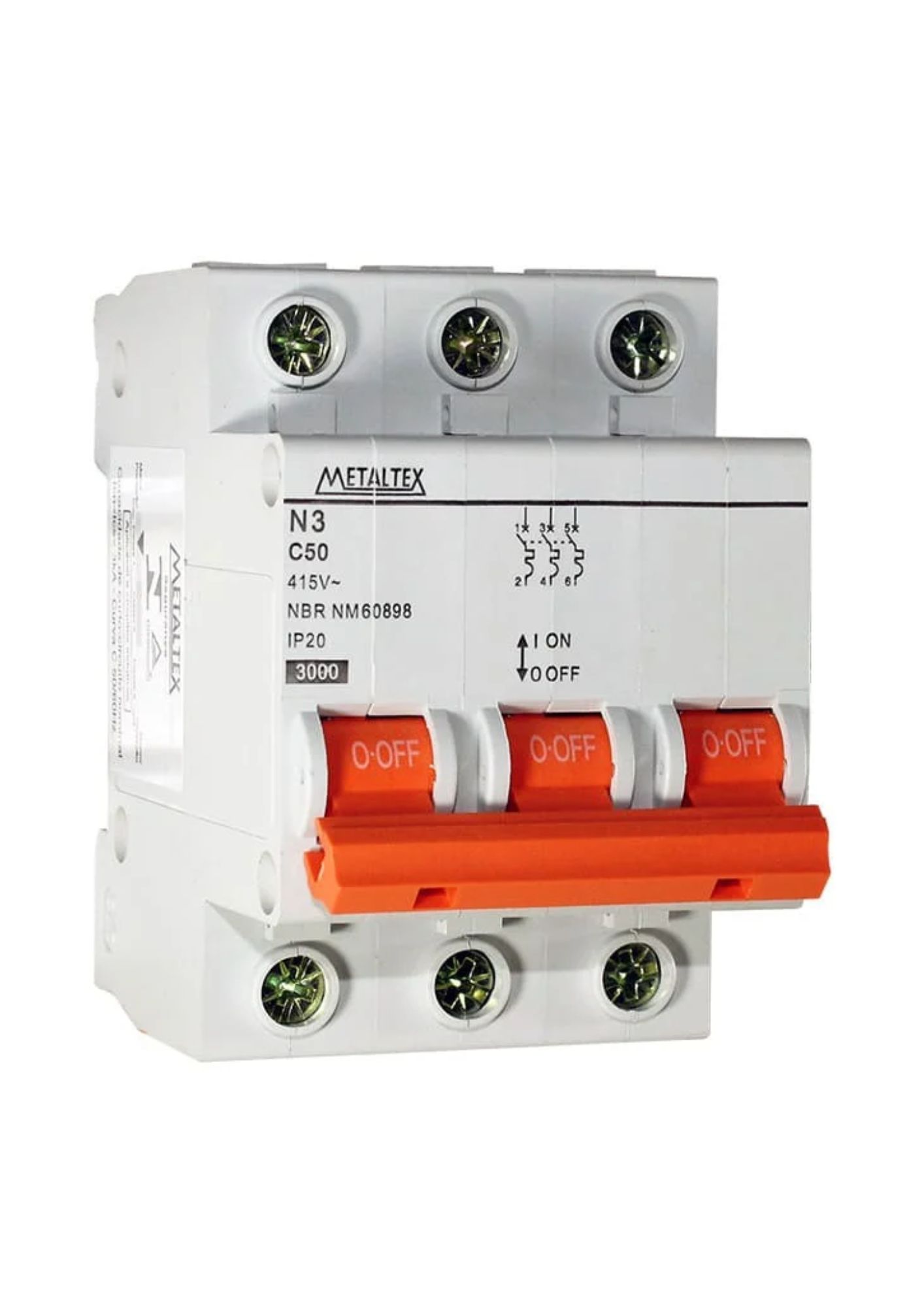 MINI DISJUNTOR 3KA 3 PÓLOS CURVA C 50A N3-3C50 I18596 004.055