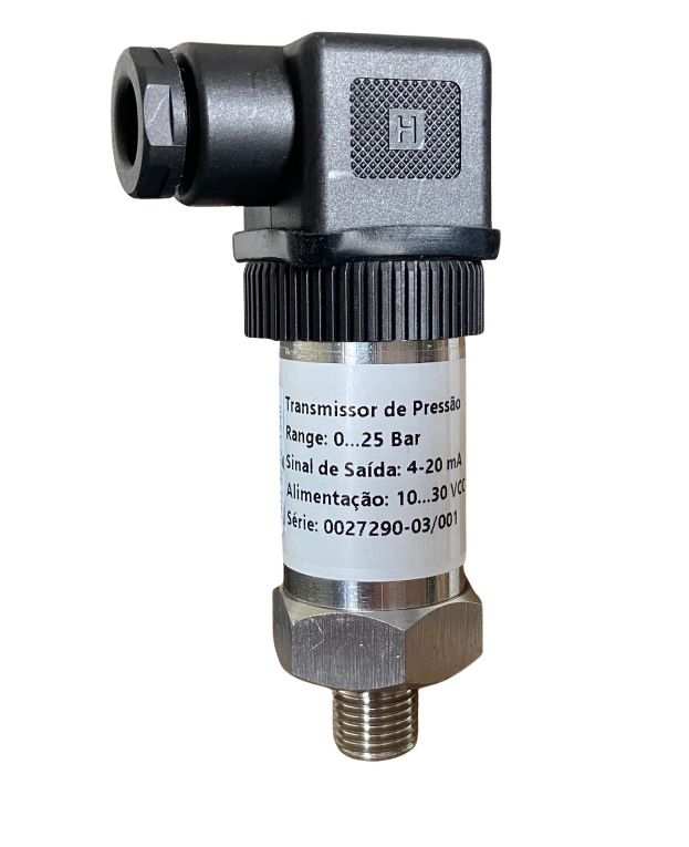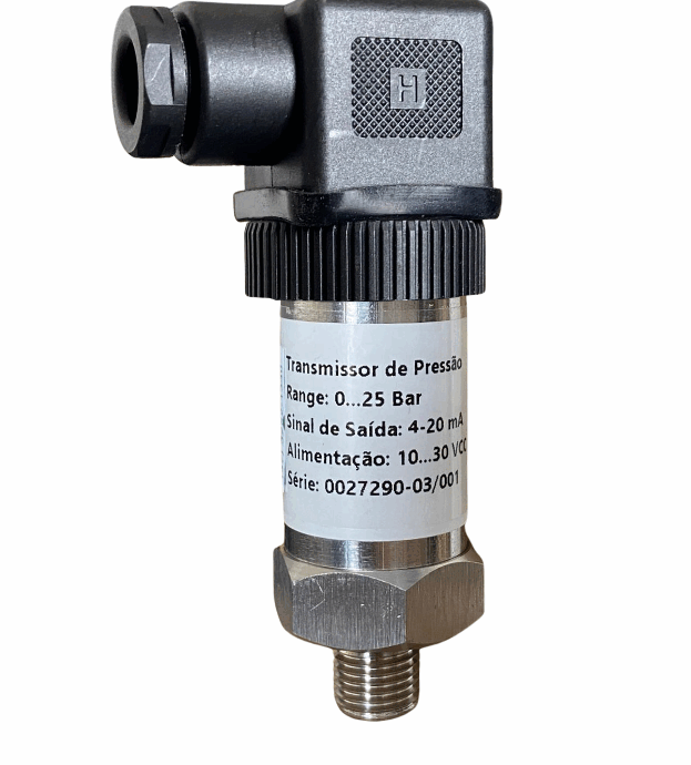 Transdutor de pressão para medições de média e alta pressão, com faixa de 0 a 25 bar e saída analógica 4–20 mA. Projetado para oferecer boa precisão, estabilidade e resistência mecânica, sendo adequado para aplicações industriais, hidráulicas e pneumáticas. Possui construção robusta e conexão roscada 1/4 para instalação simples em linhas de processo.Produto