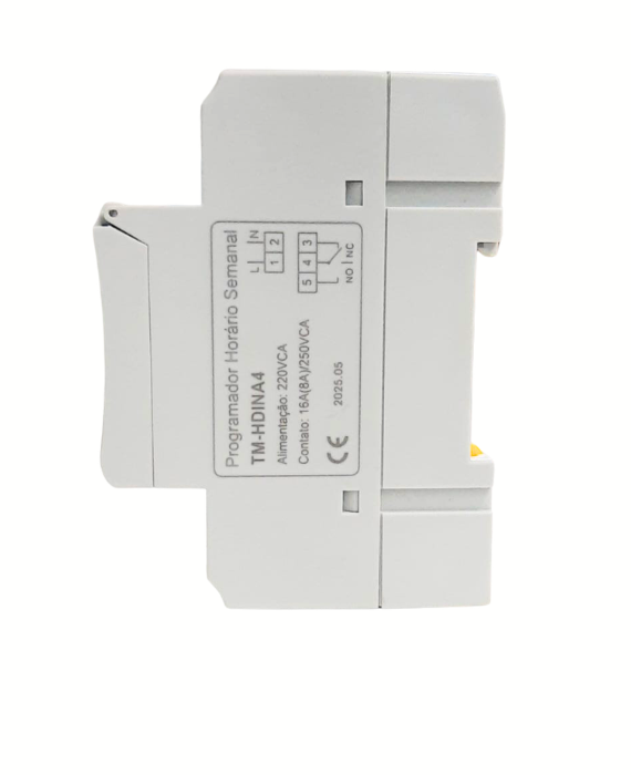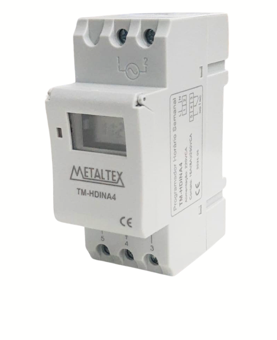 O Programador Horário Semanal TM-HDINA4 (código I21966) é um dispositivo utilizado para automação de acionamentos com base em horários programados ao longo da semana. Ele permite configurar horários específicos para ligar e desligar equipamentos automaticamente, sendo muito aplicado em iluminação, sistemas industriais, bombas, ventilação e controle de cargas em geral.