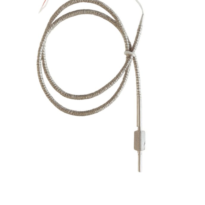 Sensor de temperatura tipo PT-100 com haste de 40 mm x 4 mm de diâmetro, fabricado em aço inox 304, ideal para aplicações industriais que exigem precisão e resistência à corrosão. Equipado com cabo de 1 metro revestido em teflon, oferece excelente isolamento térmico e durabilidade em ambientes agressivos.