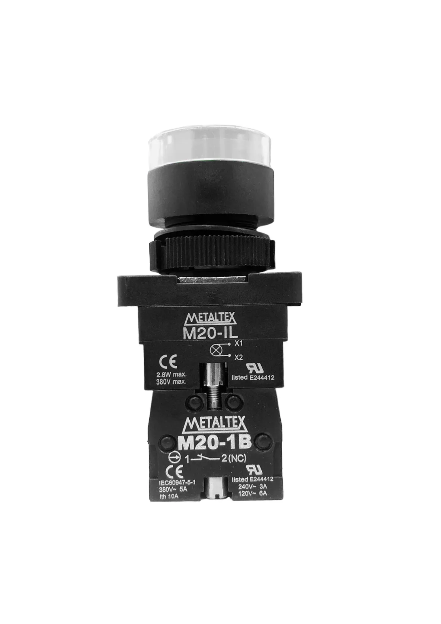 PULSADOR ILUM 22MM PLSTC BR 24V 1NA+1NF P20IGR-W7-1C 009.553