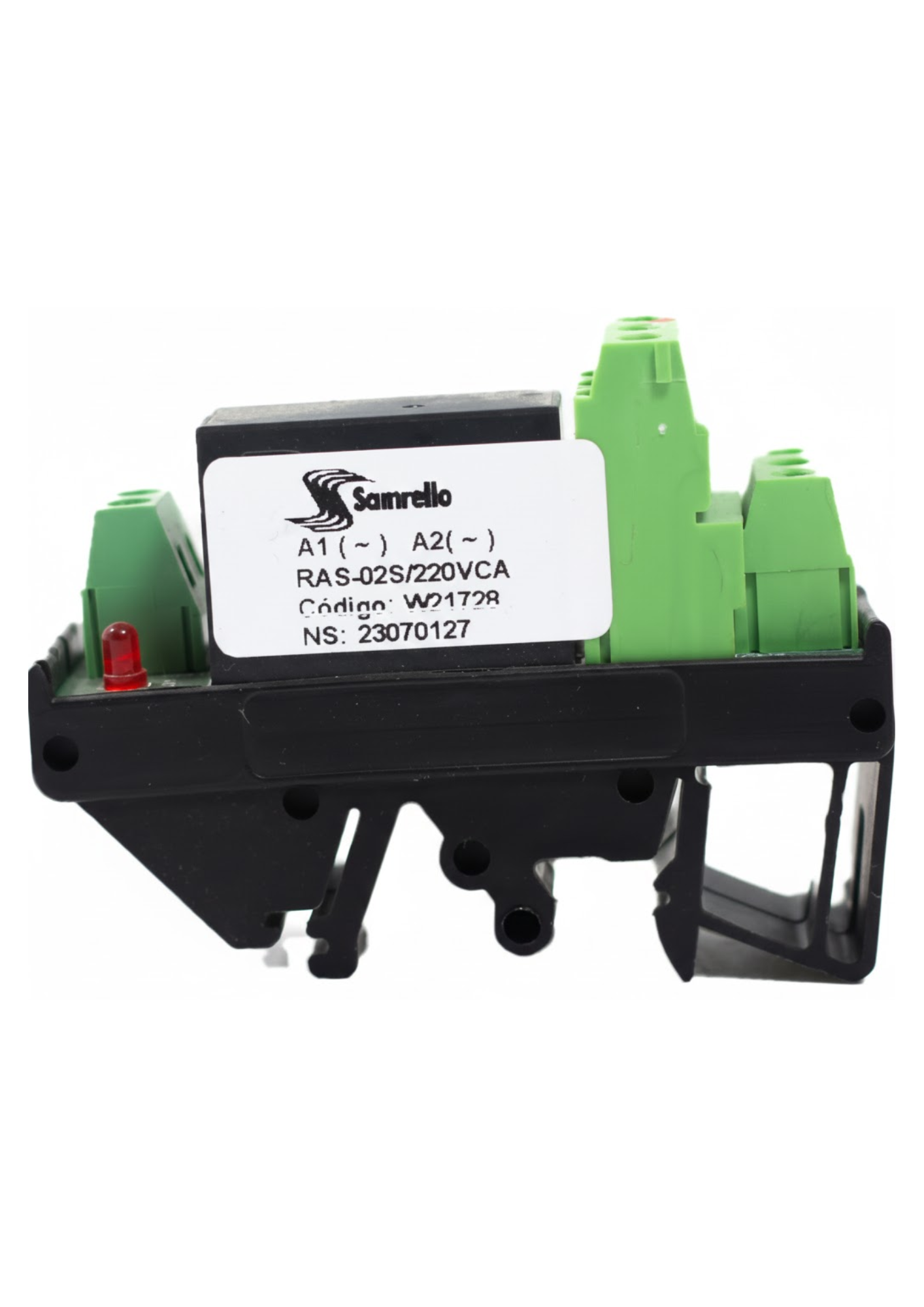 Relé acoplador para aplicações de automação residencial e industrial, operando em 220 V AC e equipado com 2 contatos reversíveis. Produto leve, confiável e utilizado para comutação e interface de sinais em painéis elétricos. Acompanha 1 unidade do modelo RAS-02S.Produto