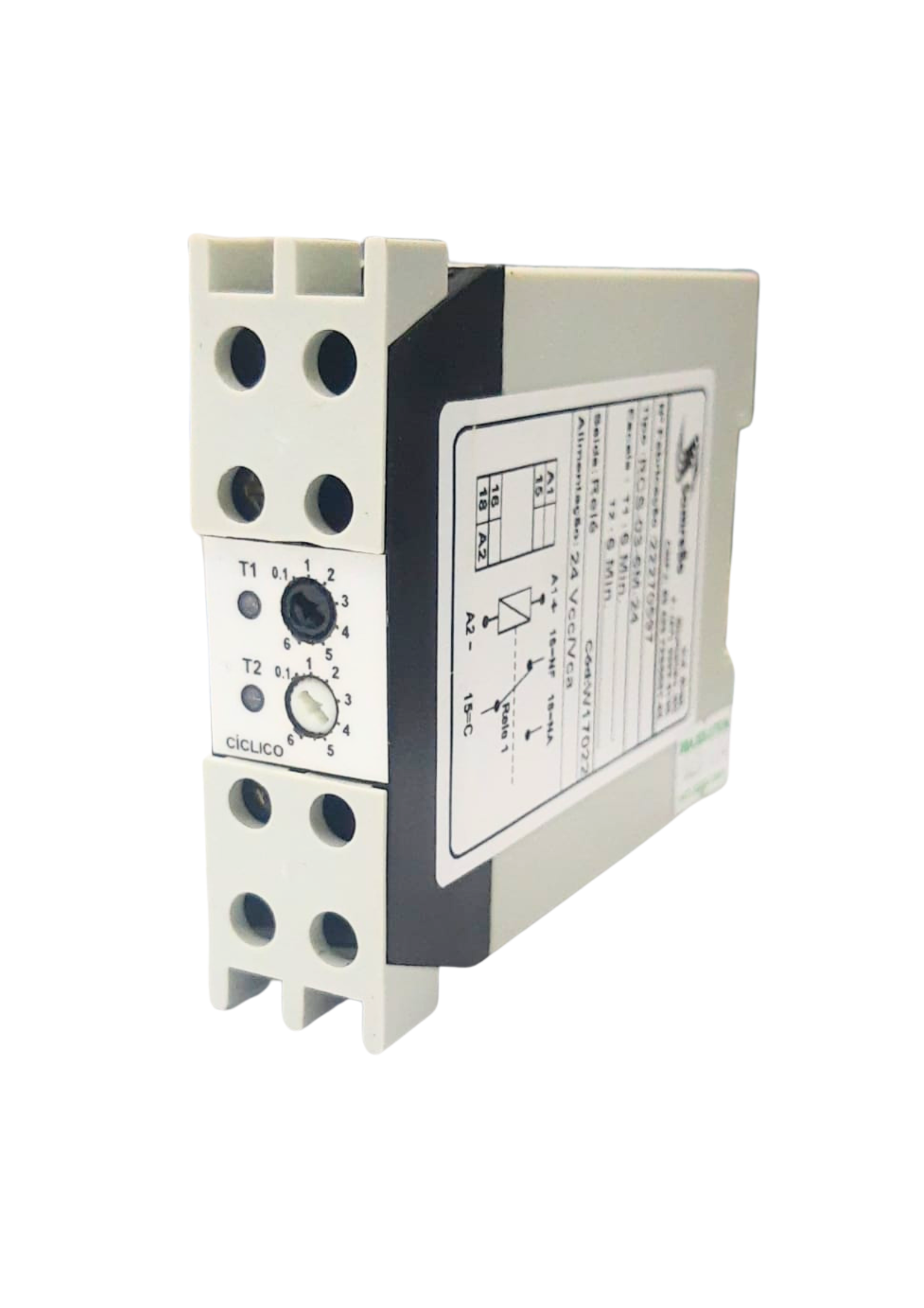Com alimentação em 24 Vcc e temporização ajustável de até 6 minutos para cada ciclo (ligado/desligado), é ideal para aplicações como controle intermitente de equipamentos, sinalização, ventilação e processos industriais que exigem operação cíclica.