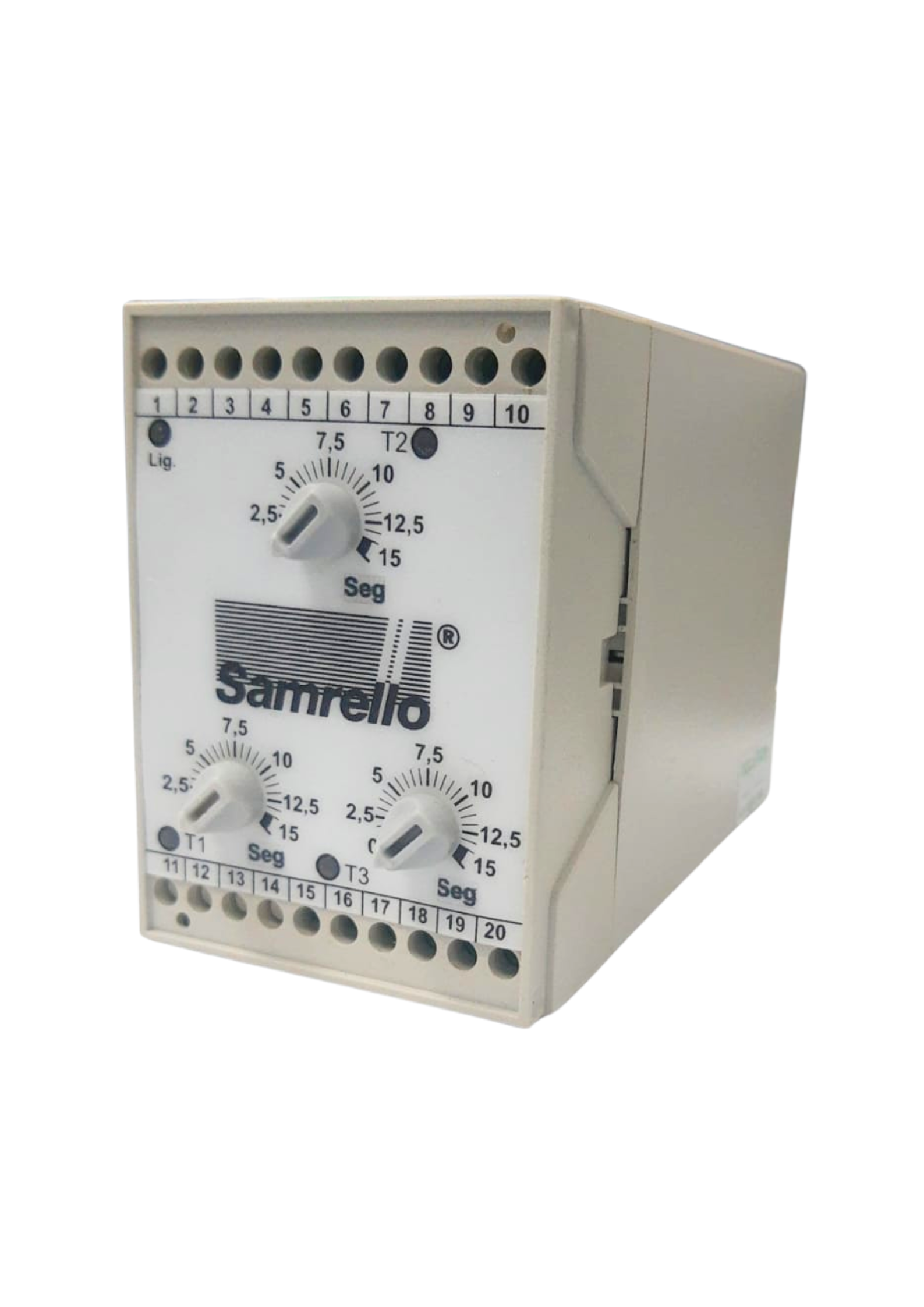 - Tipo: relé cíclico de 3 tempos (T1, T2, T3)