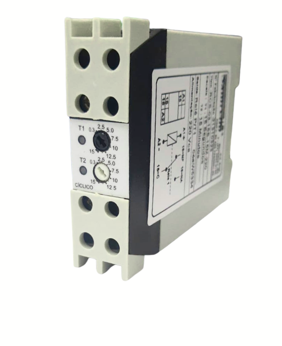 - Tipo: relé temporizador cíclico (repetitivo ON/OFF)