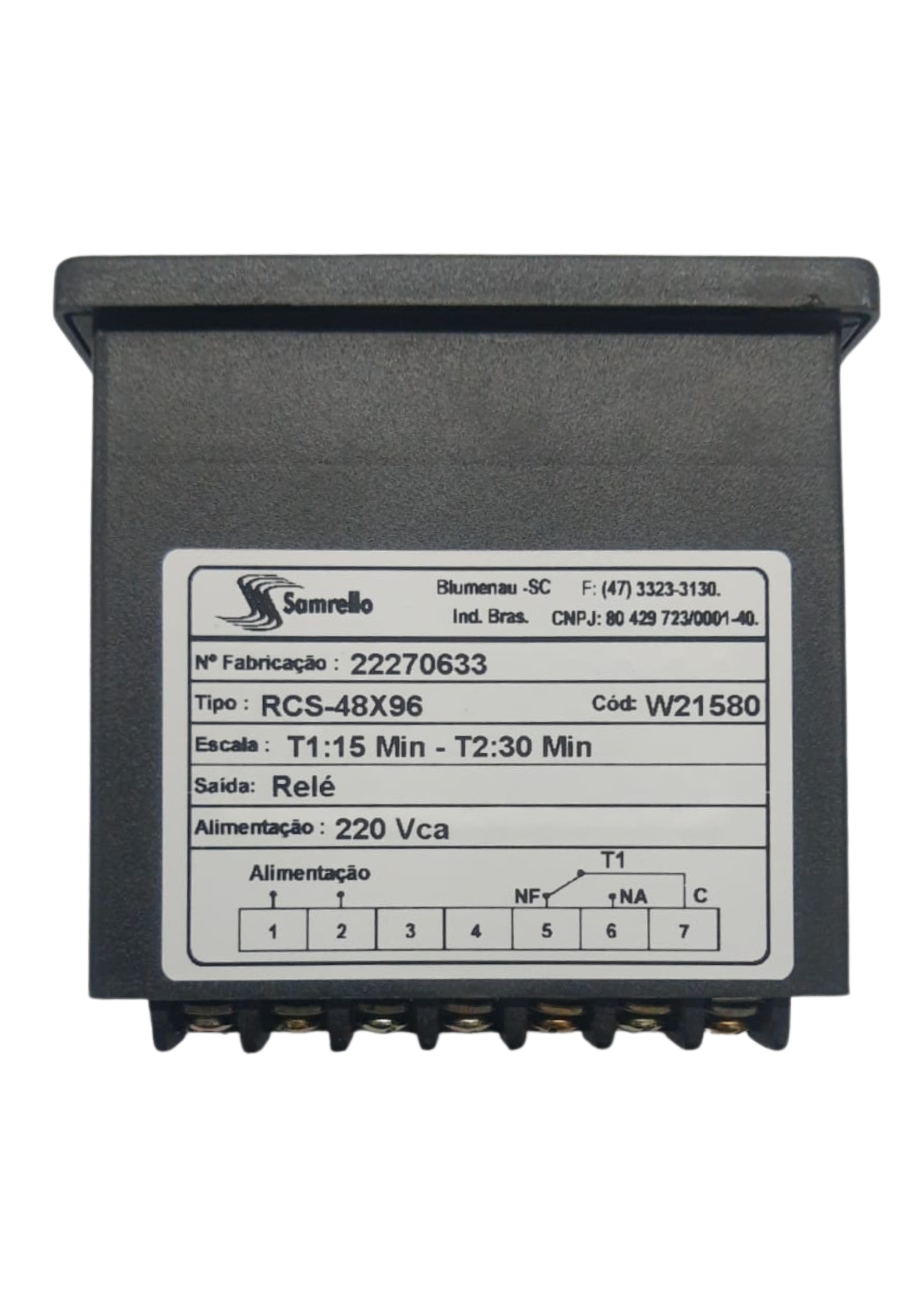 O relé cíclico RCS-48-15M/30M-220 (código 21580) é um temporizador eletrônico projetado para realizar ciclos automáticos de acionamento e desligamento em sistemas elétricos e de automação. Alimentado em 220 VCA, ele opera de forma contínua alternando sua saída entre estado energizado e desenergizado conforme tempos previamente ajustados.