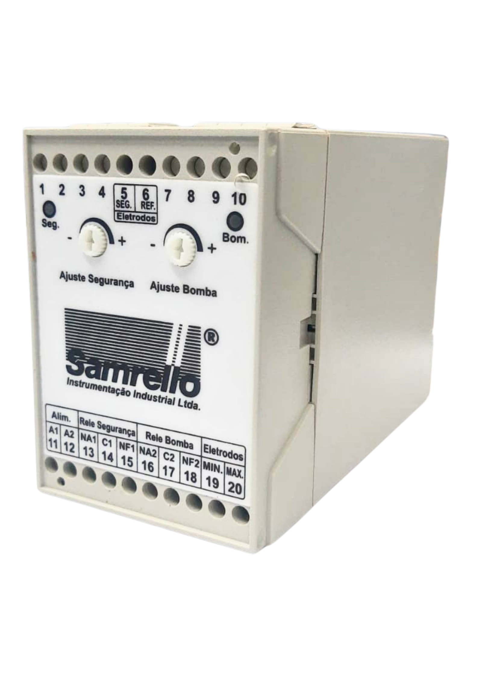 Com alimentação em 220 Vca, oferece operação confiável e segura, sendo amplamente aplicado em sistemas de automação, saneamento e processos industriais que exigem controle automático de nível.
