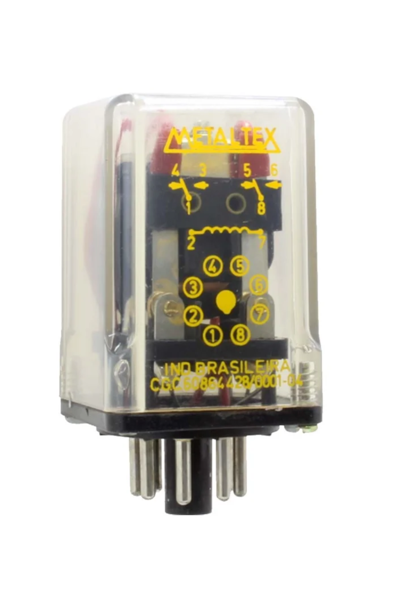 Configuração dos contatos: 2PDT (2 contatos reversíveis – NA/NF)