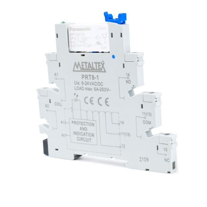 Módulo interface composto de relé e base modular para montagem em trilho DIN 35mm com LED de identificação de acionamento. Relé eletromecânico com 1 contato reversível para 6A@250VCA/30VCC. A base é para conexão dos cabos por parafuso. Além de comutar cargas em geral, o módulo possui modelos com contato AgNi+Au específico para comutação de sinal: sinal de sensor de temperatura, corrente 4~20mA, tensão em mV, entre outras aplicações específicas.
