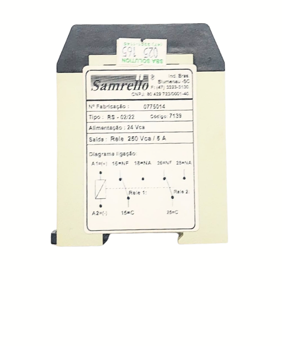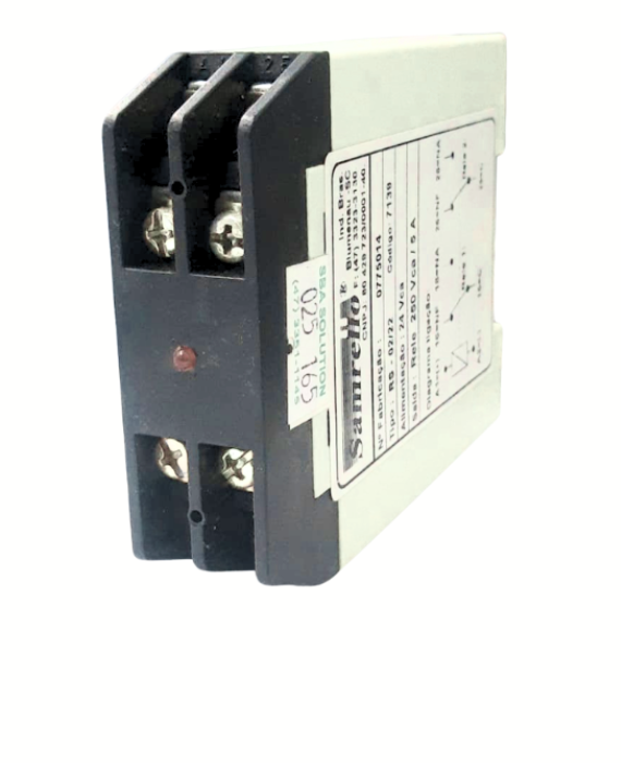 O relé interface RS-2/22 SAM é um dispositivo eletromecânico utilizado para interface entre circuitos de comando e potência, operando com alimentação em 24Vca. É indicado para isolamento e acionamento de cargas em sistemas de automação industrial.