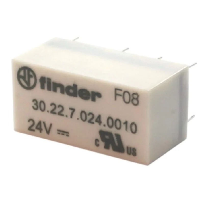 Relé compacto projetado para montagem em placas eletrônicas (PCI), ideal para comutação de sinais e controle de cargas leves em sistemas de automação e circuitos de comando. Opera com bobina de 24 VDC e possui dois contatos reversíveis, permitindo grande flexibilidade de acionamento.