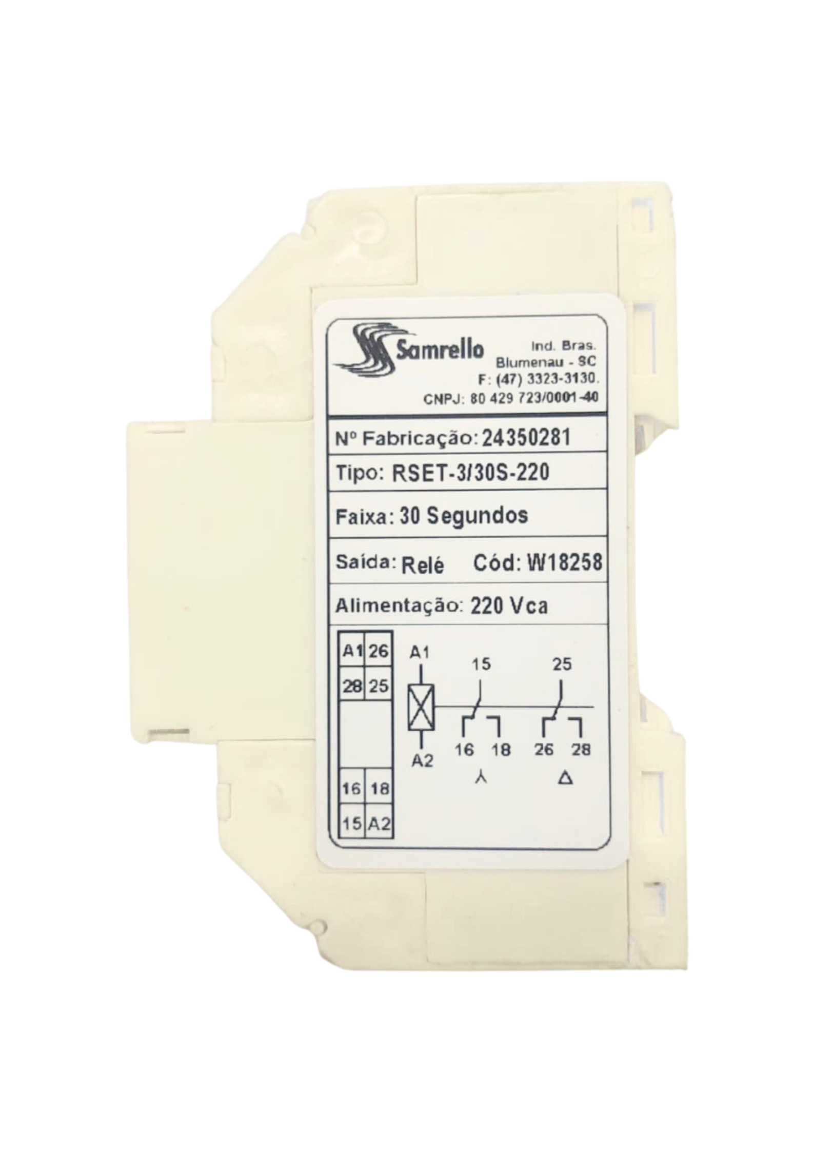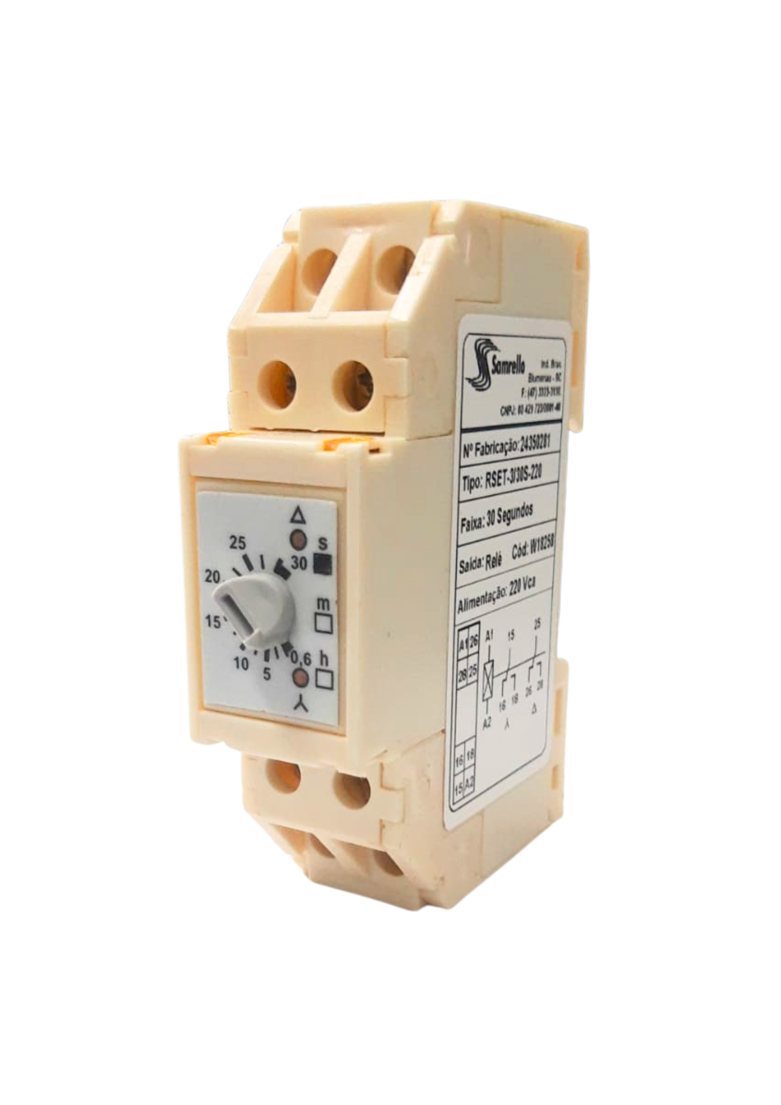 Com alimentação em 220 Vca e tempo ajustável até 30 segundos, garante uma transição segura entre os estágios estrela e triângulo, sendo amplamente utilizado em painéis de comando industrial e sistemas de automação.