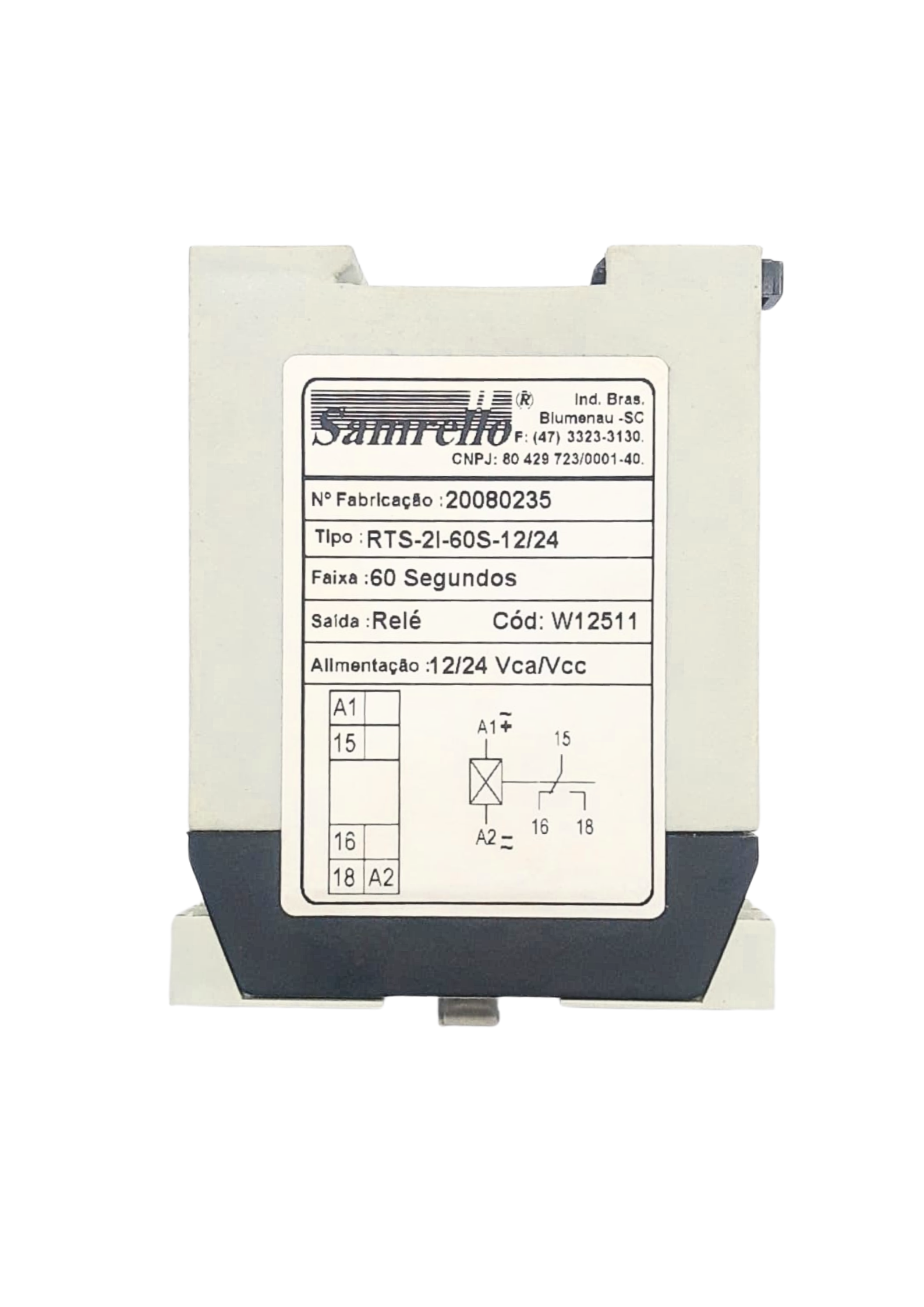 O relé temporizador RTS-2I-60S-12/24 SAM (código 12511) é um dispositivo eletrônico utilizado para realizar temporização em comandos elétricos, com faixa de até 60 segundos. Alimentado em 12/24 V (CA/CC), ele atua gerando um atraso na atuação da saída após a energização, sendo indicado para controle de sequência e pequenos tempos em sistemas de automação.