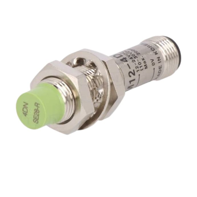 Sensor indutivo cilíndrico modelo PRCM12-4DN da Autonics, com corpo roscado M12, detecção de até 4 mm, saída NPN normalmente aberta (NO) e conexão por cabo ou conector. Possui proteção contra inversão de polaridade, surtos elétricos e sobrecorrente, além de grau de proteção IP67, garantindo alta durabilidade e confiabilidade em aplicações industriais para detecção de objetos metálicos sem contato físico.